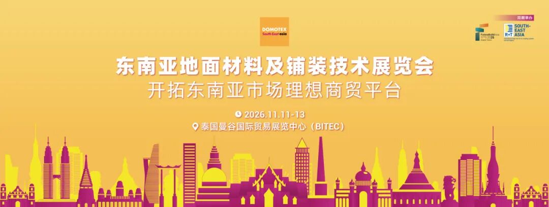 FutureBuild Asia同期展会DOMOTEX South East Asia东南亚地面材料及铺装技术展览会将于2026年11月11日至13日,在泰国曼谷国际贸易展览中心(BITEC)隆重举办。