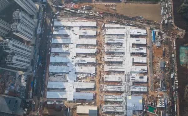 从天空俯瞰,雷神山医院呈鱼骨状分布