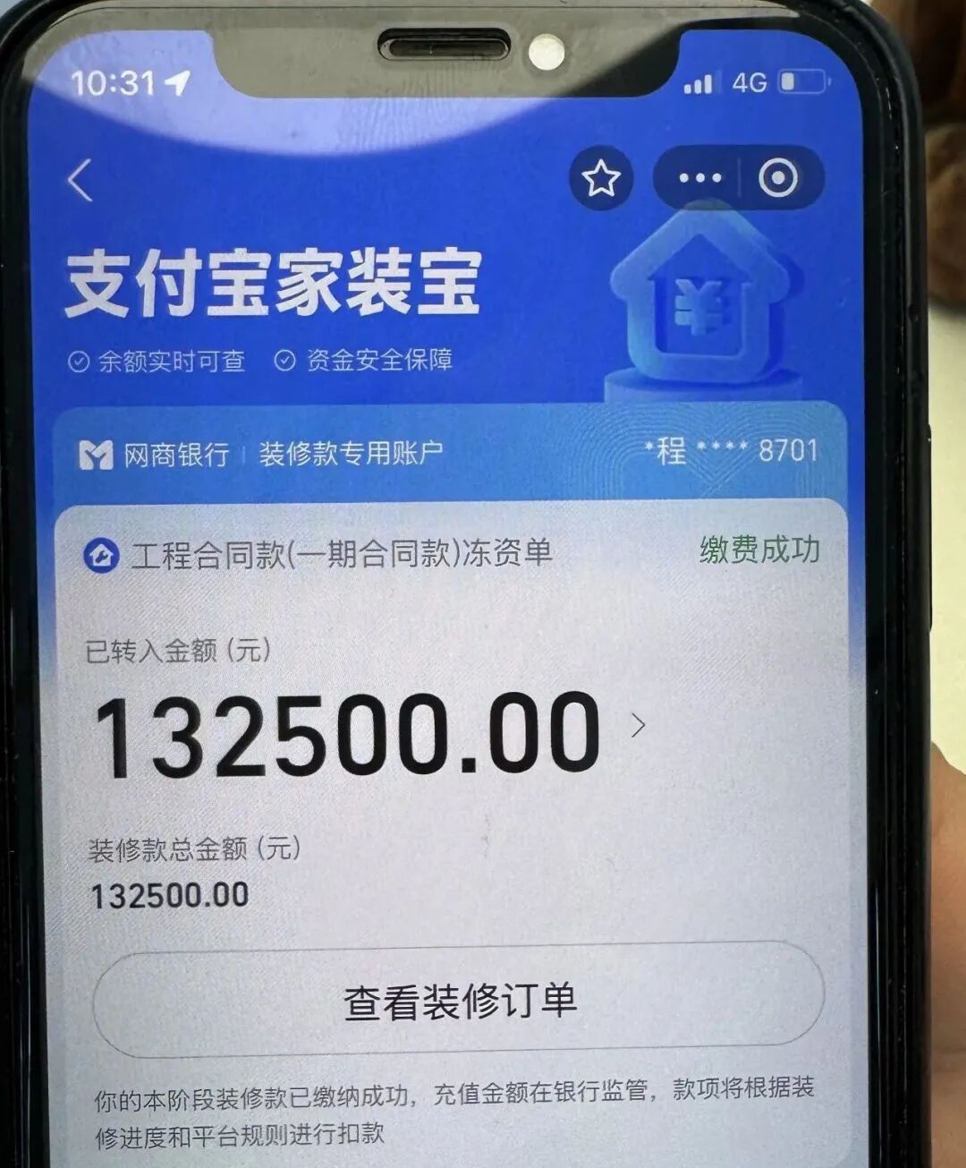 9月18日,支付宝联合生态伙伴,正式推出“家装宝”服务,致力于通过技术手段与资金管理能力,为用户体验及行业升级提供新范式。“家装宝”服务的核心,在于将支付宝的技术与资金管理能力与装修行业深度场景相结合,形成“资金安全-透明装修-标准交付”的全链路保障。业主的装修款直接存入专用资金账户,而非装修公司。装修公司无法预支或挪用资金,仅能按合同约定节点及事项(如拆除、水电、泥木、安装等施工服务和材料下单等环节),经业主线上确认后,获得对应服务项目的工程款支配,真正做到“干多少、付多少”。 详见《支付宝联合生态伙伴推出“家装宝”服务,助力家装消费保障》,来源:支付宝开放平台