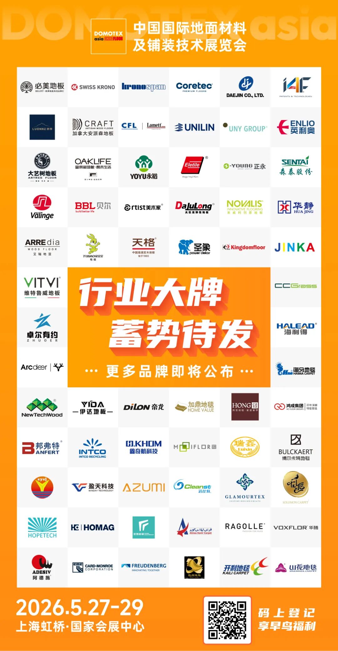 当全球产业链面临重构,地材行业步入深度调整的十字路口,一场汇聚趋势、连接全球的亚太地材盛会,即将如期而至。DOMOTEX asia 2026以“穿越周期的新势能”为主题,汇聚全球大牌,集中呈现亚太产业链优势,5月上海,这场国际地材盛会正蓄势待发。