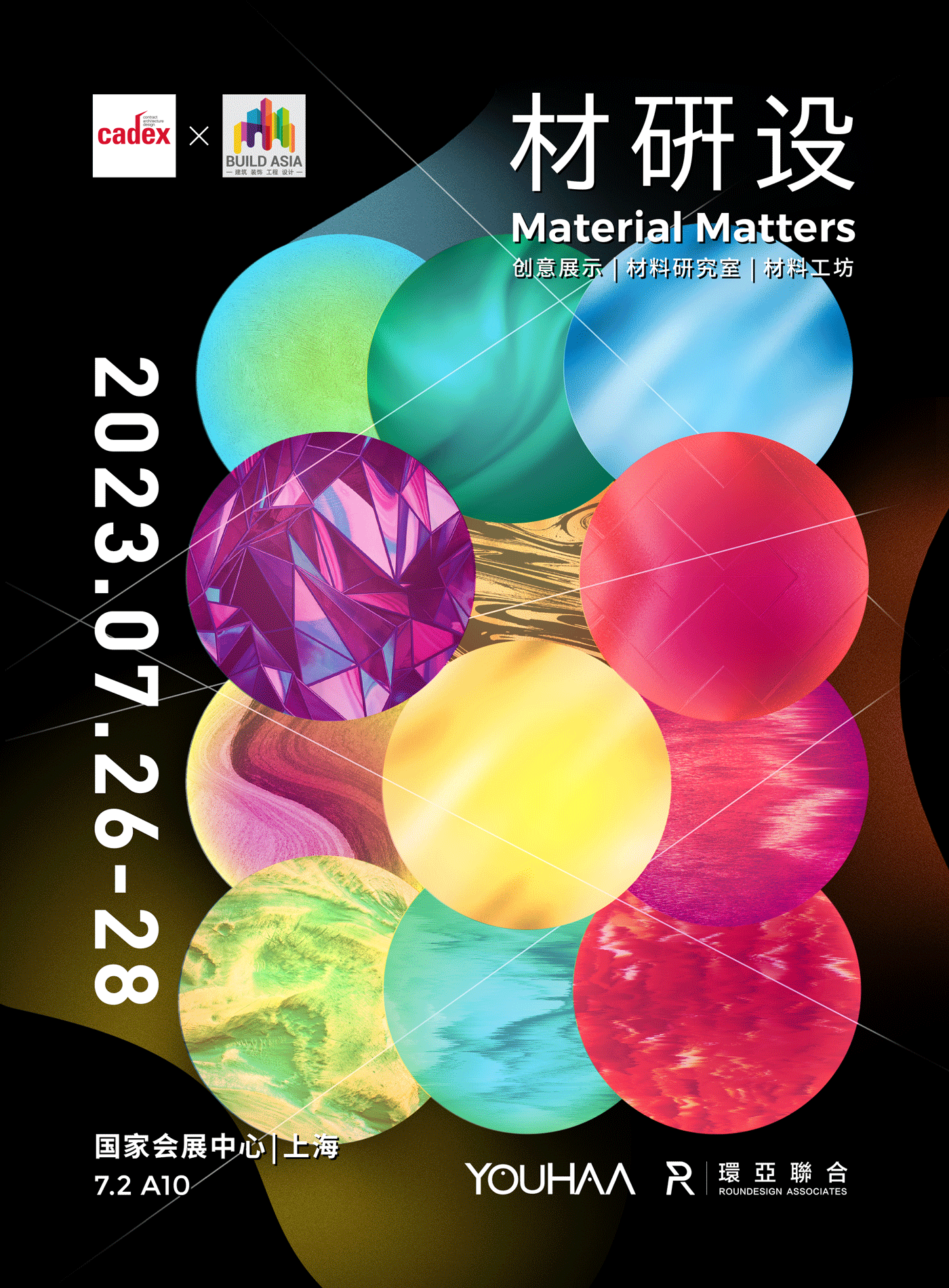 cadex 继续携手DOMOTEX asia,并特邀环亚联合的杨志伟老师等多名设计师进行特别策展,精心打造Material Matters 材研设材料创意展示区,区域升级、设计升级、互动升级,甄选独具设计或技术含量的创新材料,并根据应用场景展示材料,建筑师、设计师们能够一站式的了解材料本身,并为他们的下一个项目寻找合适的材料!